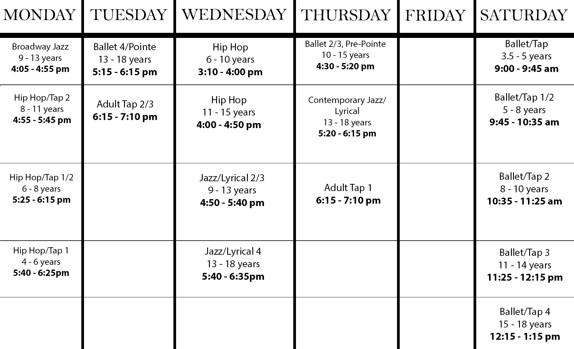 4 Week Payment Session Schedule. Payments are due for each session in the first week of that session. A $10.00 late fee is charged for late payments.